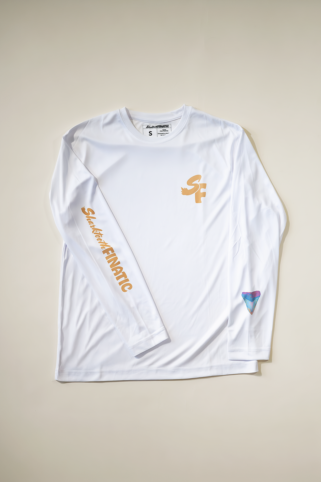 Introducing our OG performance shirt combines a minimalist style and sun protection in a sleek design. Featuring our letter-mark on the left chest, logo down the right sleeve, and on the left sleeve your choice from our collection of minimalist shark tooth artwork, designed using actual teeth from our personal collection.
